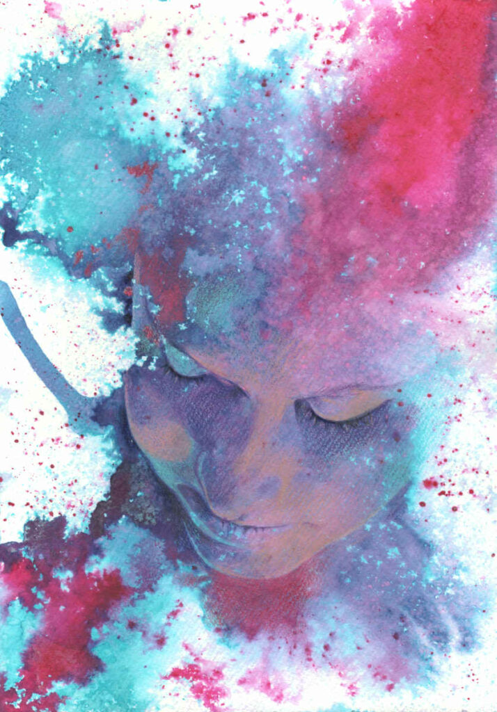 I like to tell the human being by trying to paint it as an “interior landscape” and therefore I make human emotional portraits. Sometimes the bodies and the faces are fluid because they dissolve and melt in inks or in watercolors and thus the WATER element captures the lines and the forms to melt them and to create a nostalgia, an interior light, a lymphatic time. Other times, these figures are nestled in more steep, material, terrestrial and rocky surfaces painted in acrylics and, in this case, in the EARTH element I seek reminiscences, atavistic roots, memories. It is a slow, silent path which helps me to probe the human soul and which passes through the FIRE, the sacred fire which takes not only mystics but also artists and poets during the act of creation.