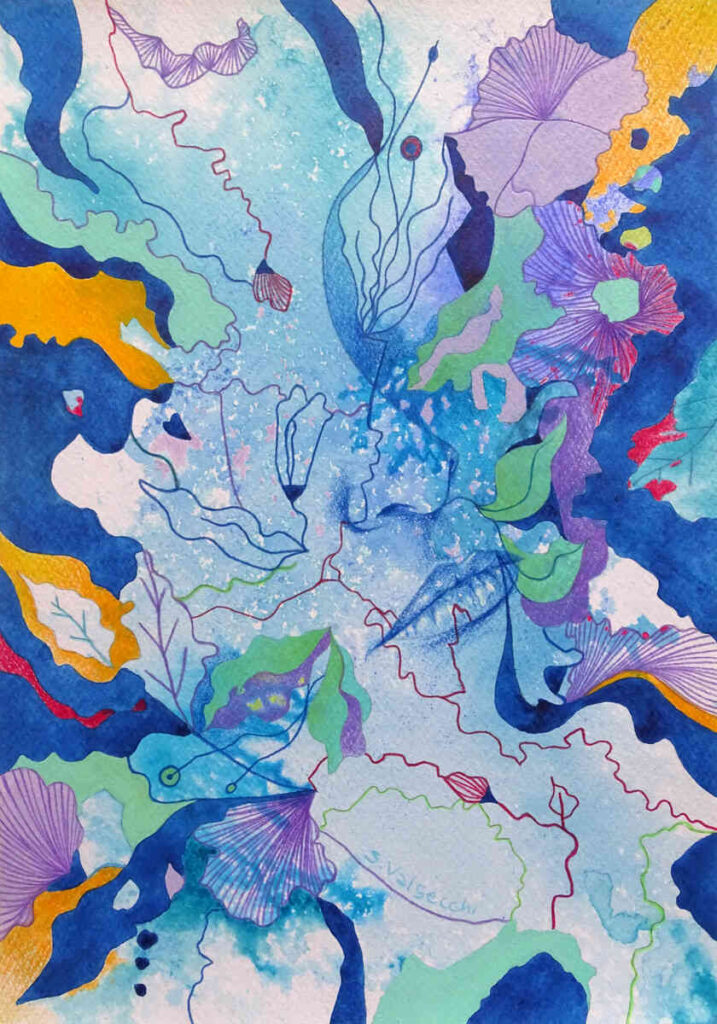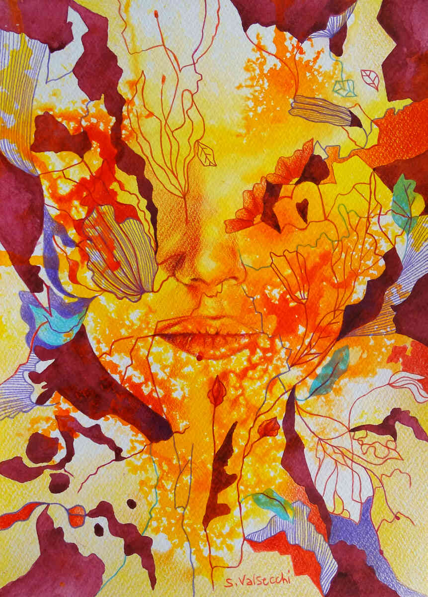 These feminine faces in harmony with the microcosm, symbolised by the interweaving of plant elements, emblematic of life and the world in the making, invite the viewer to share and explore this inner kingdom.
